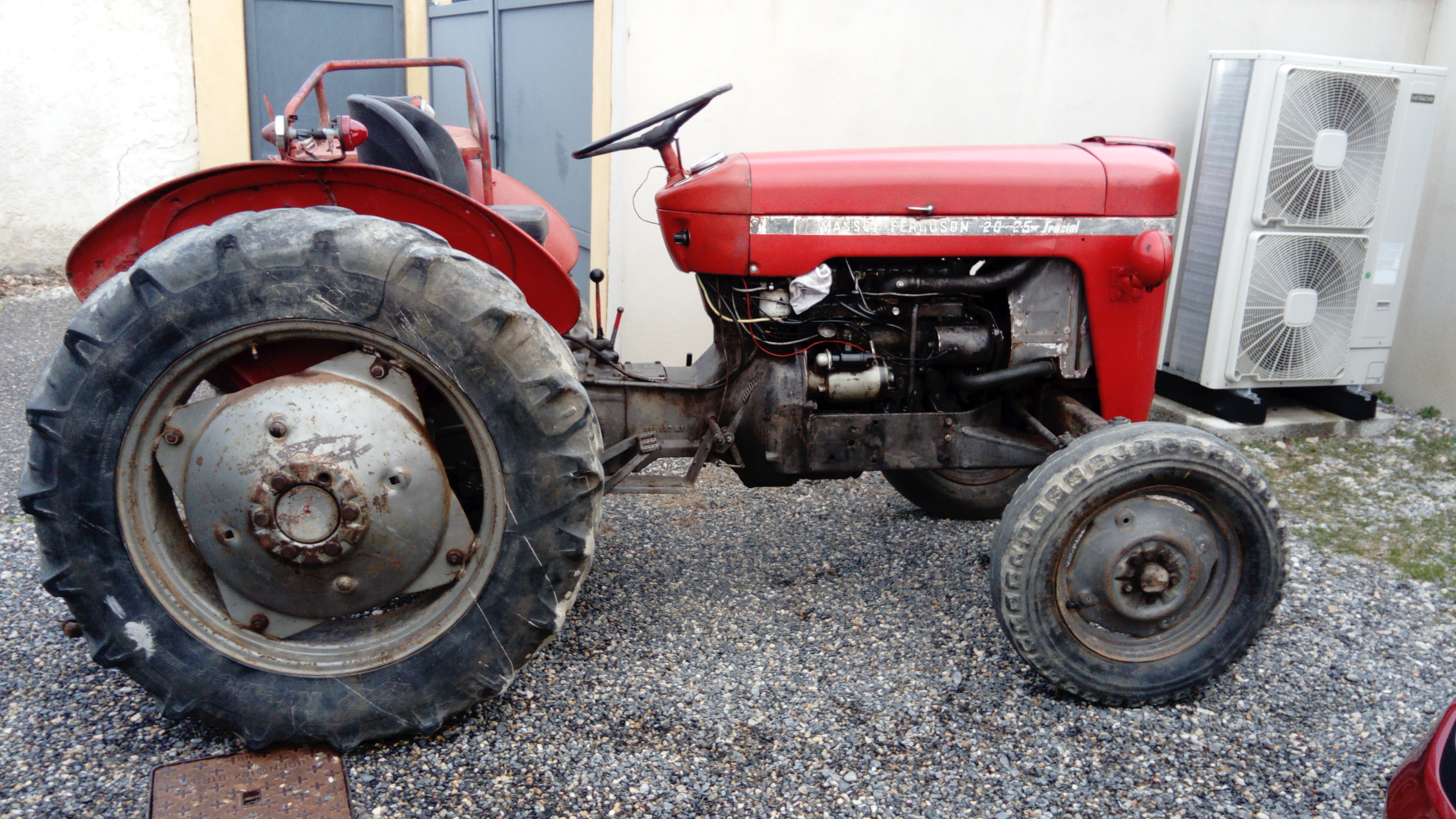 Vends tracteur MASSEY FERGUSON 20/25 Spécial. Pour pièces ou à réparer. Le tracteur démarre et roule. Embrayage, Freins, boite de vitesses, prise de force, vidange moteur et BV : OK.